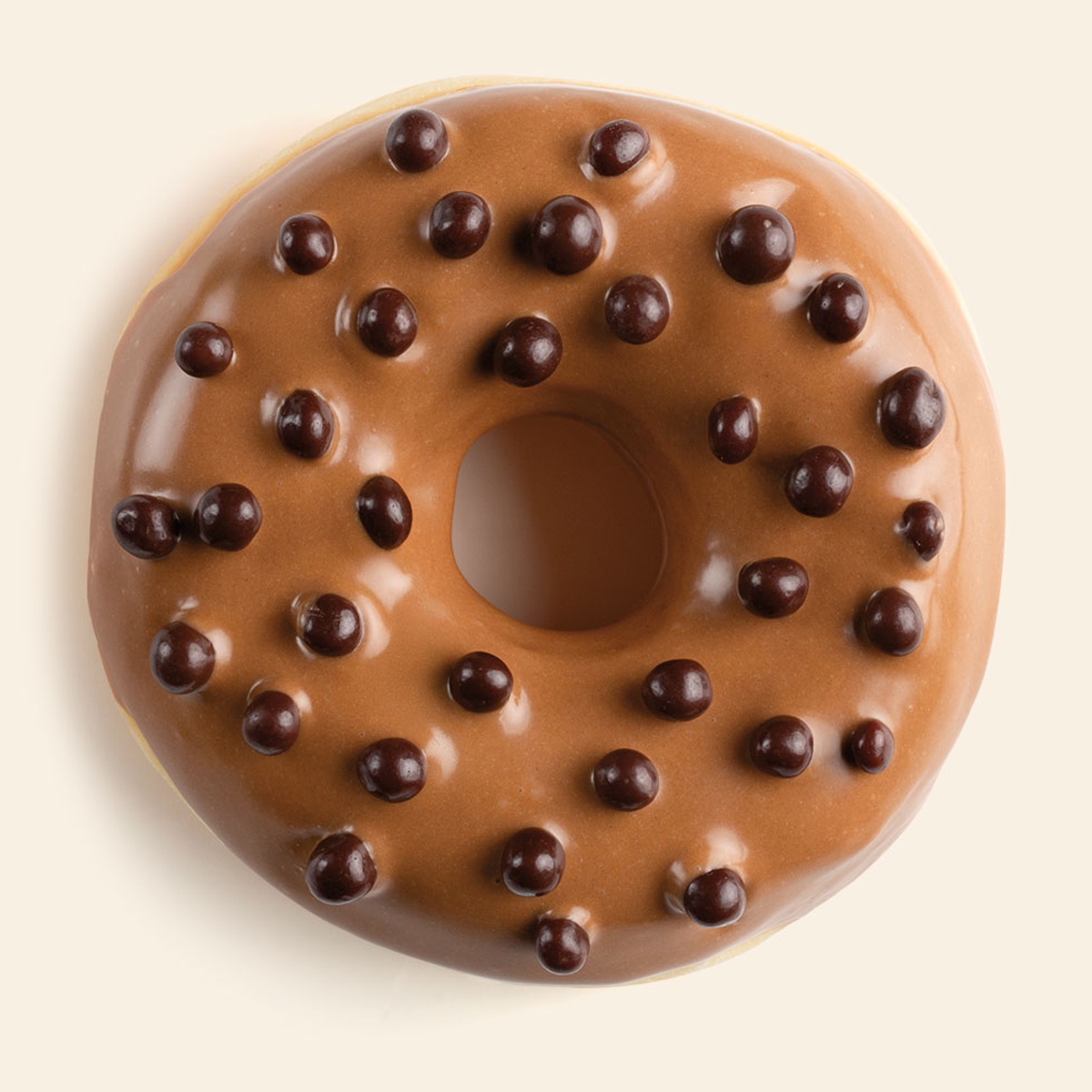 Núcleo de cereais revestido a chocolate negro com 5mm de diâmetro.