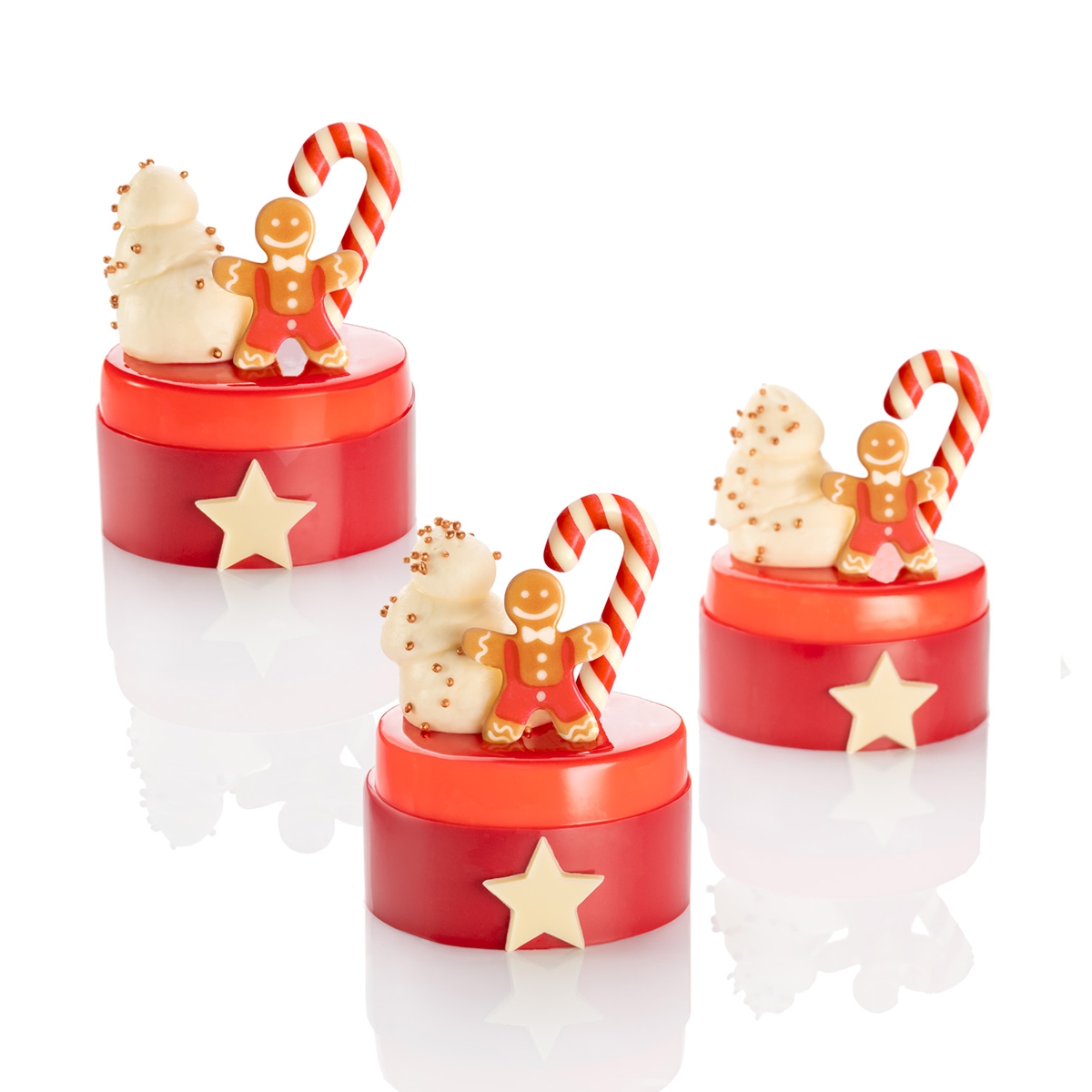 O Cookie Man é uma decoração natalícia com 30 x 37 mm, feita de chocolate branco de alta qualidade com uma impressão castanha-avermelhada de um boneco de gengibre.