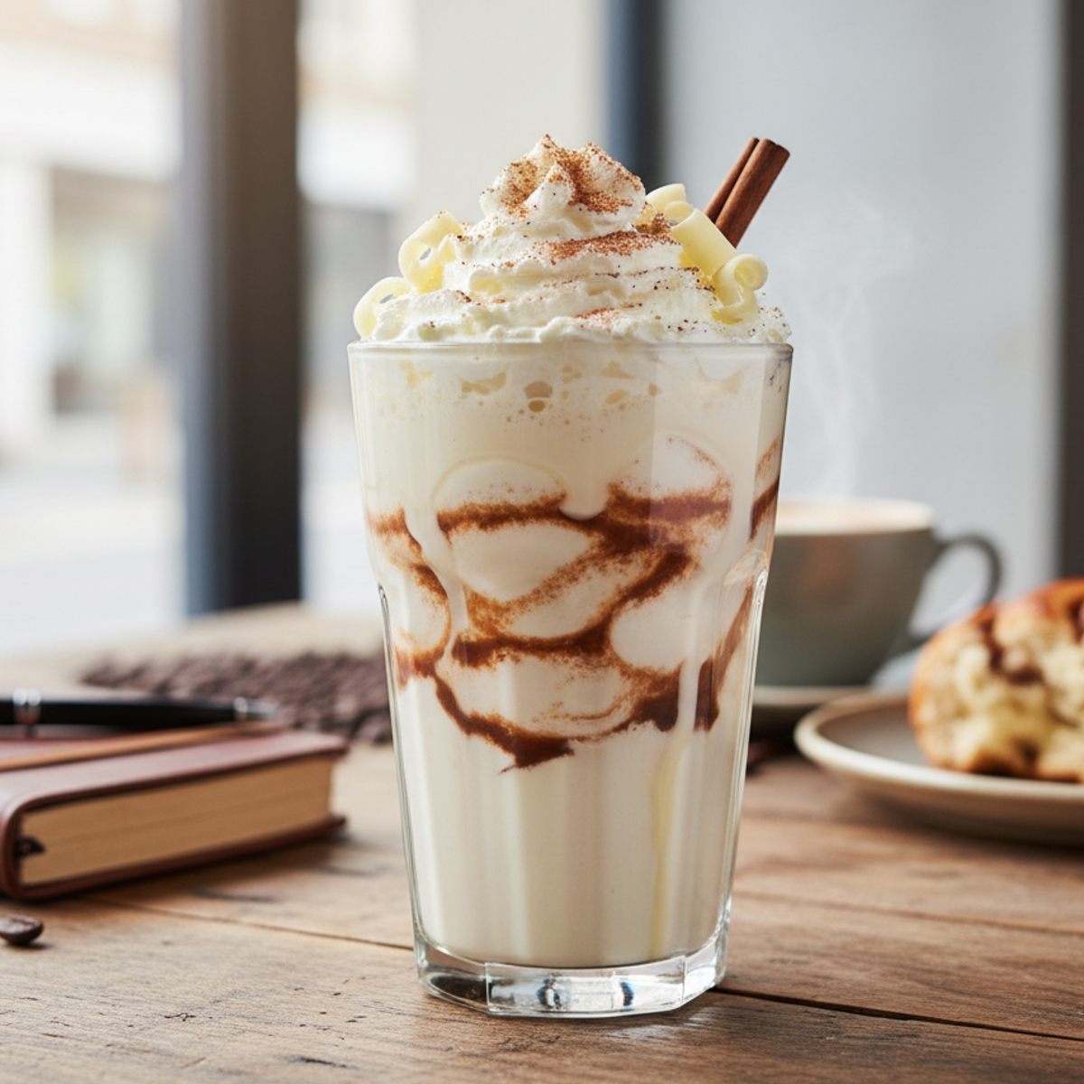 Adicionar 30g de Mix Frappé Chocolate Branco Decadence Moka, 80ml de leite gordo e 180g de gelo no blender