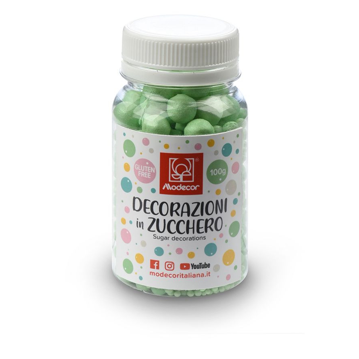 Pérolas de Açúcar Verde Tamanhos Diversos Modecor 100g