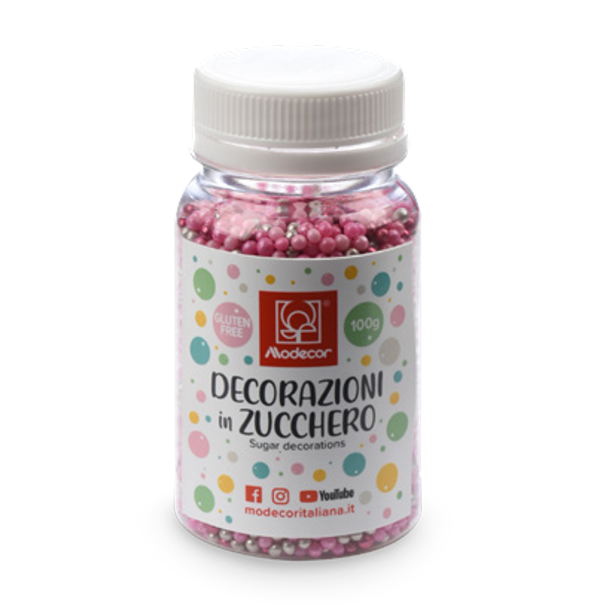 Pérolas de Açúcar Rosa Tamanhos Diversos Modecor 100g