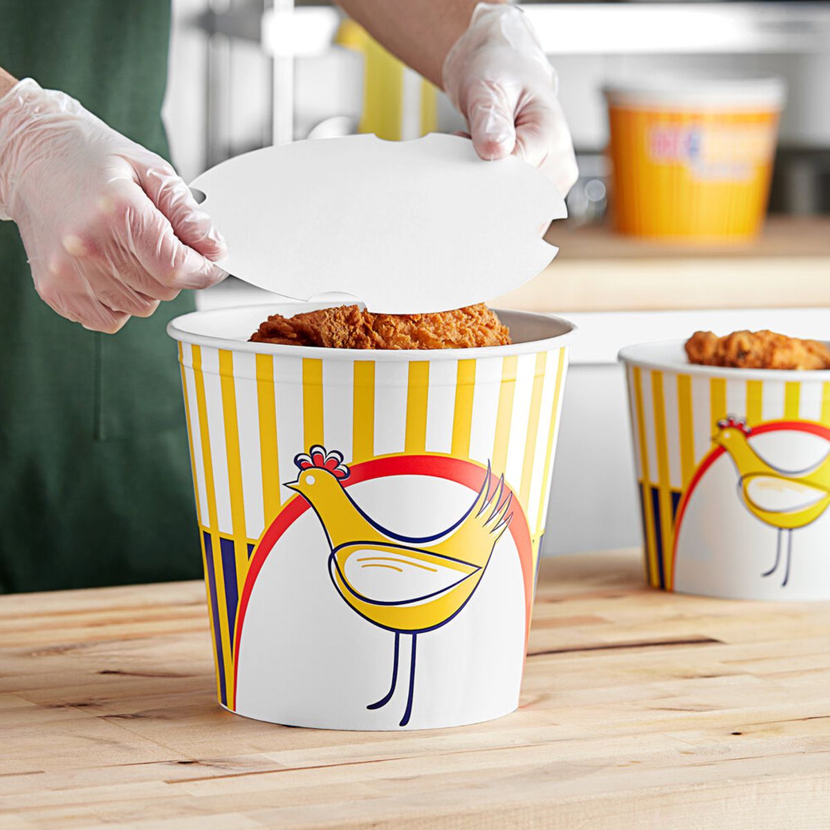 Baldes para servir frango ou produtos semelhantes, fabricados em cartão resistente.