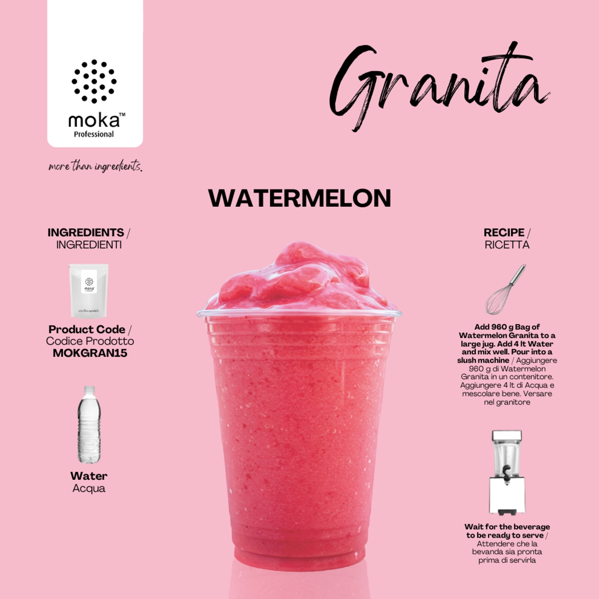 Mezcla para granizados de sandía, llena de frescura y vitalidad, con un dulzor jugoso.