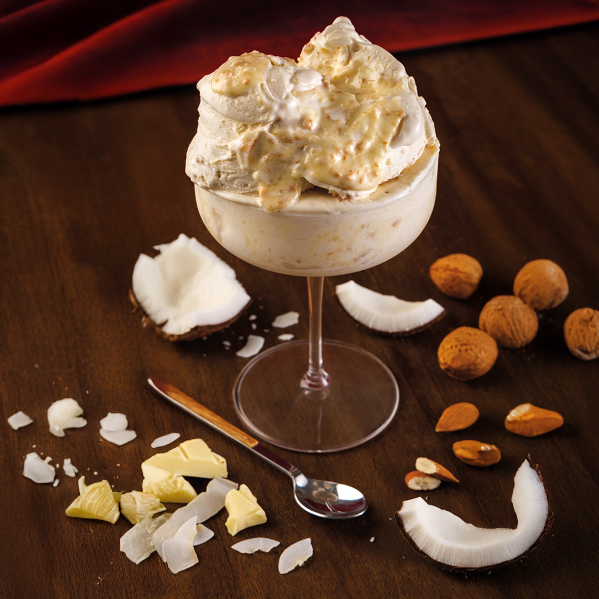 Com a mesma cremosidade e aroma convidativo do produto original, mas numa versão inovadora que permite que cada vez mais pessoas possam saborear esta iguaria rica em coco ralado, amêndoas picadas e biscoitos.
