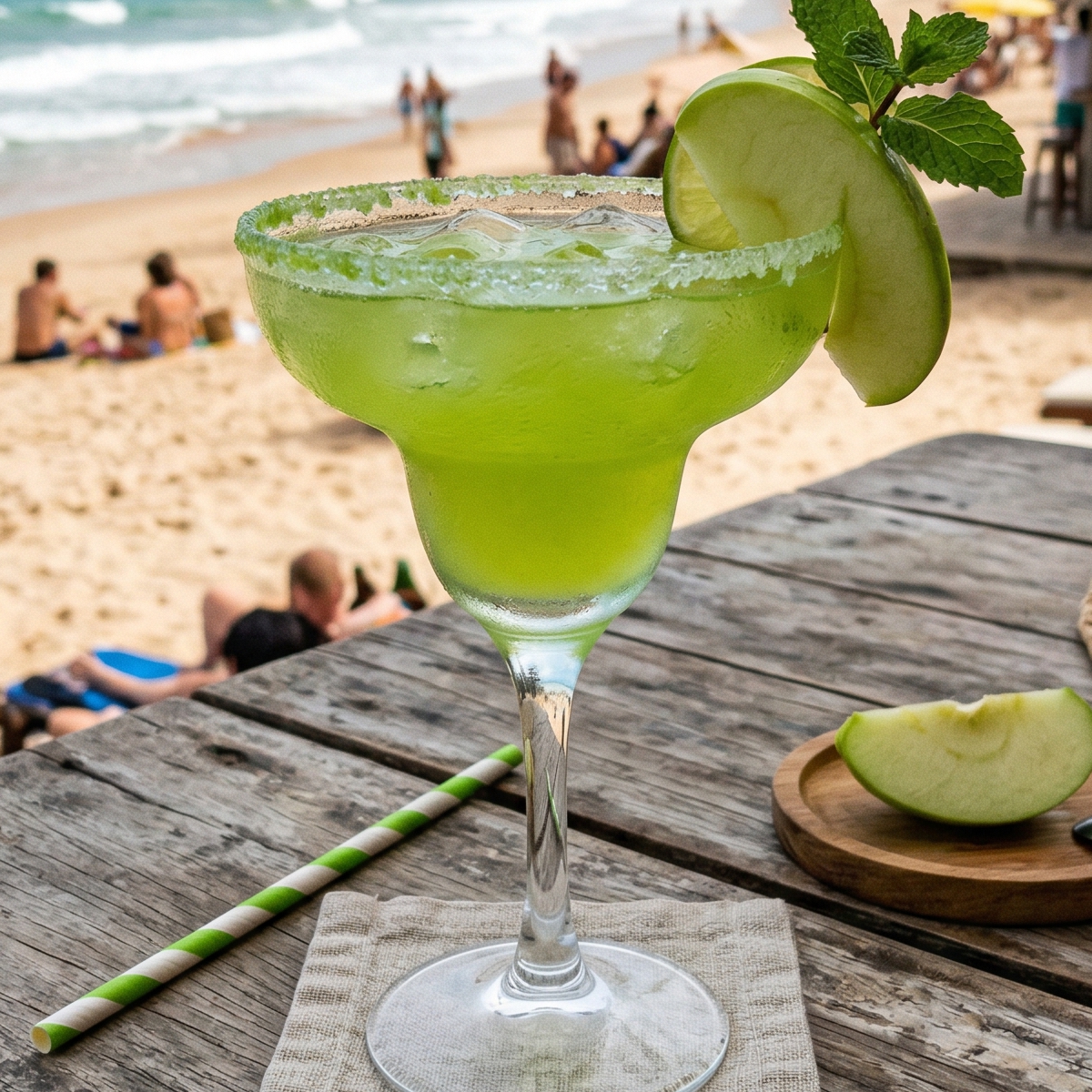Decorar com rebordo de sal e um gomo de lima.
